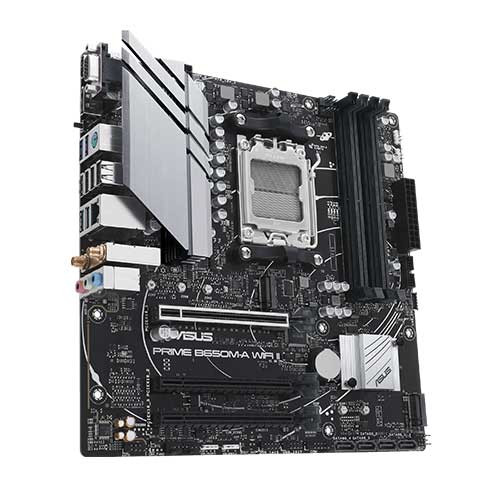 AMD B650 Micro-ATX motherboard, DDR5, PCIe 5.0 M.2 support, Realtek 2.5Gb Ethernet, Wi-Fi 6, DisplayPort, VGA, HDMI®, SATA 6 Gbps, USB 3.2 Gen 2 ports, front USB 3.2 Gen 1 Type-C®, BIOS FlashBack™, Aura Sync