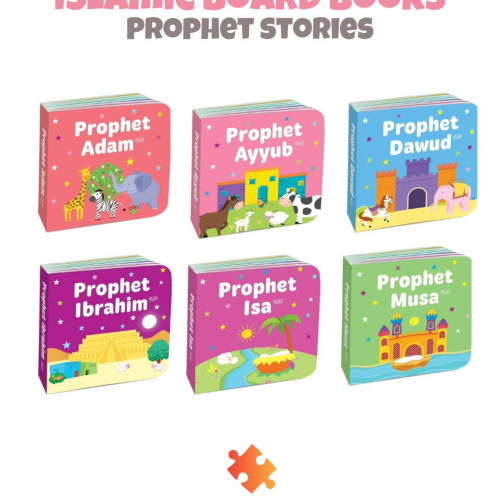 12 Sturdy board books - Quran stories for little ones, designed to be interactive and engaging, filled with meaningful Islamic teachings and values that inspire young hearts and minds.