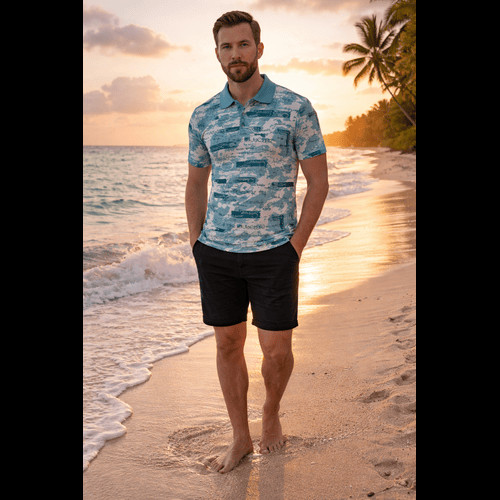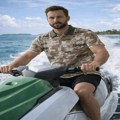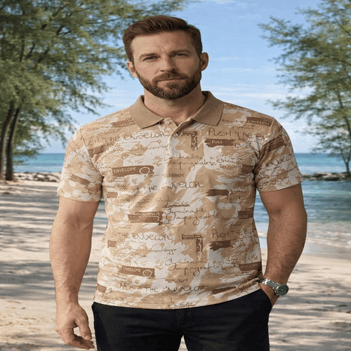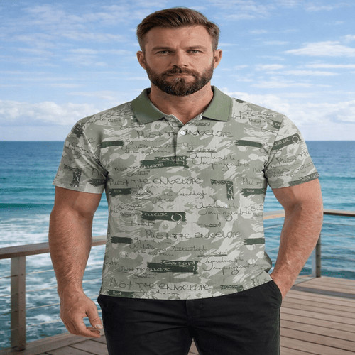 This stylish polo T-shirt blends modern design with everyday comfort, making it a versatile addition to any wardrobe. Featuring a unique abstract camouflage print with handwritten-style graphics, it offers a contemporary twist on a classic pattern.