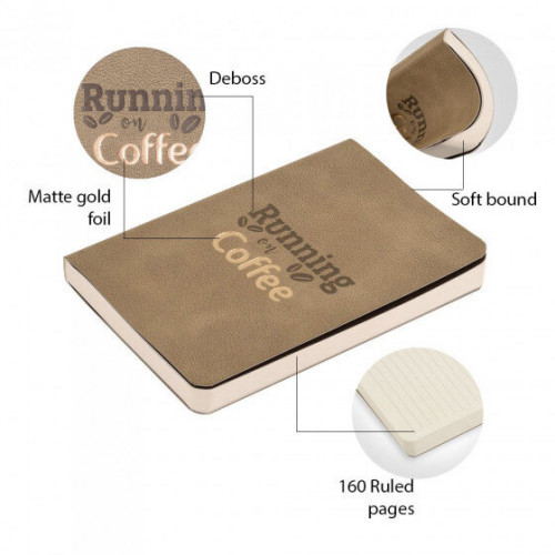 Styled with the words ‘Running on’ and some coffee beans in blind deboss and the word Coffee in copper foil on the front cover, this pocket diary has a stunning layout. Also, it is compact in size and features 192 ruled pages, so you can take it with you wherever you are headed and won’t run out of pages to pen down your thoughts
