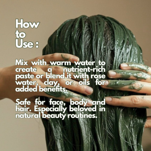 How to use: Mix with warm water to create a nutrient-rich paste or blend it with rose water, clay, or oils for added benefits. Safe for all skin types and especially beloved in natural beauty routines.