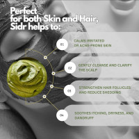 It helps calm irritated or acne-prone skin, gently cleanse the scalp, strengthen hair follicles, reduce shedding, and relieve itching, dryness, and dandruff.