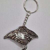 Handcrafted in Maldives, this manta ray coconut shell keychain is eco-friendly, lightweight, and uniquely handmade with a smooth natural finish.