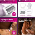 Cordless with 4 Accessories, BRL136/00, White. Philips Lady Shaver Series 6000 is designed to be gentle and comfortable on the skin in different body areas. Rounded trimmer tips in front of and behind the shaving foil keep the shaver gliding smoothly over your skin. For a gentle and comfortable use during your shower or bath routine with anti-slip grip for optimal Wet & Dry use. With rechargeable battery, Philips Lady Shaver Series 6000 provides up to 40 mins cordless use. USB-A charging cable included Power adapter not included.