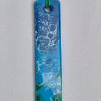 A glossy resin bookmark with wave designs, inspired by the calming beauty of the ocean.