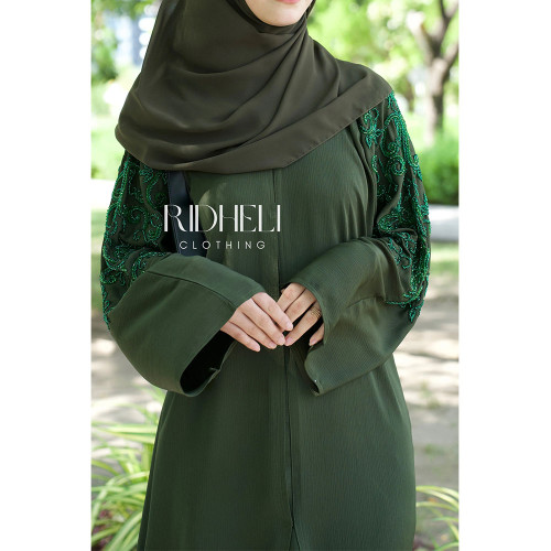 Matching BeltComplimentary HijabZoom MaterialOpen AbayaHand Beaded DesignElevate your style with the Beaded Abaya — where grace meets sophistication!"