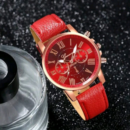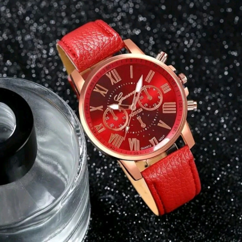 3pcs Women PU Leather Brand Wach Set With 3-Eye Roman Numeral Dial Quartz Watch, Fation jewelry Accessories Suit (No Box)