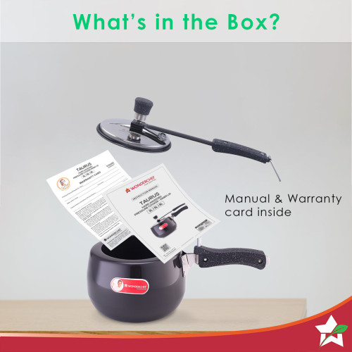 Presenting a beautiful and yet contemporary blend of Hard Anodized body, Stainless Steel Lid, Granite finish soft touch handle and knob of steel weight valve! Wonderchef Taurus Hard Anodized Pressure Cooker is made up of Anodized coating which makes it energy efficient, sturdy and non-reactive to food therefore makes it a healthy pressure cooker to have it in your kitchen. It is ideal for a family size of 3-4 members.