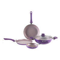 A royal velvet adds a touch of sophistication. Wonderchef Royal Velvet Set of pans enhances the style quotient of your kitchen. Wonderchef Cookware Set of 4 includes a Fry Pan, Wok, Dosa Tawa and Mini Fry Pan. Beautifully designed non-stick pans with marble coating inside and a vibrant colour outside, complement the entire look. The perfect gift option for special or festive occasions.