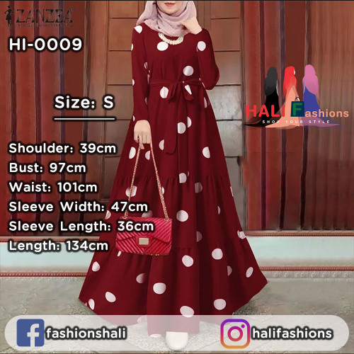 ZANZEA Muslimah Women Muslim Polka Dots Long Sleeve A-Line Layered Retro Maxi Dress